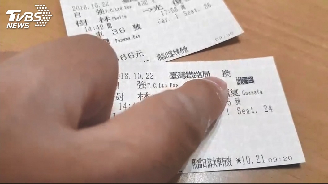 手上拿著原本的車票,因為太太希望丈夫跟自己一起星期一再回花蓮,所以不讓老先生一個人坐車,逼他到火車站換票。